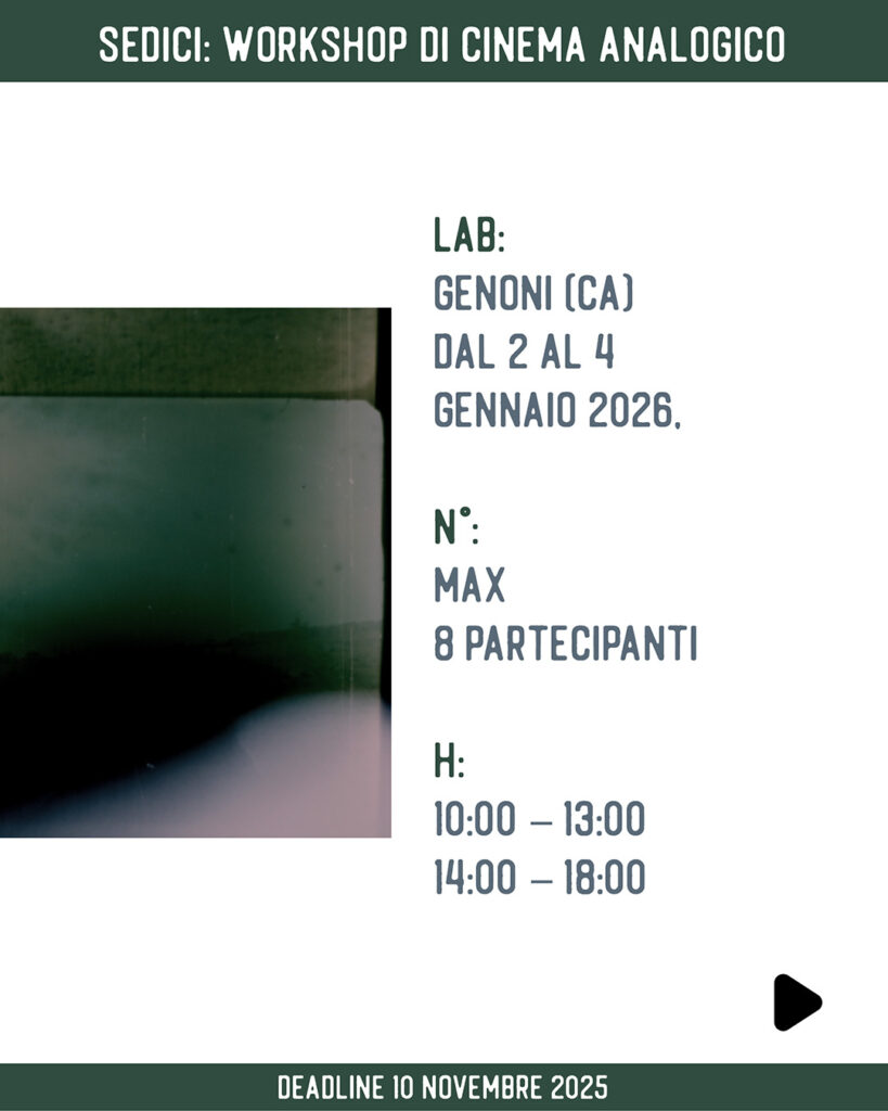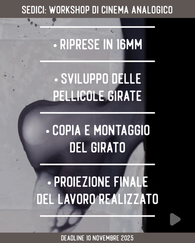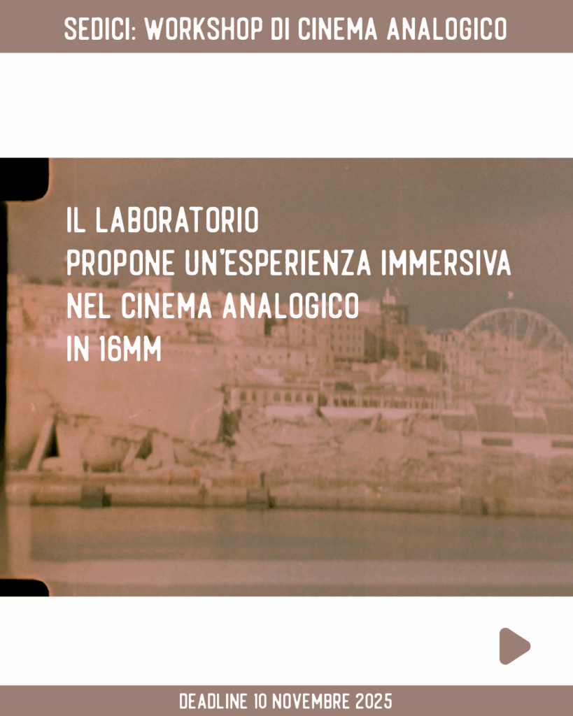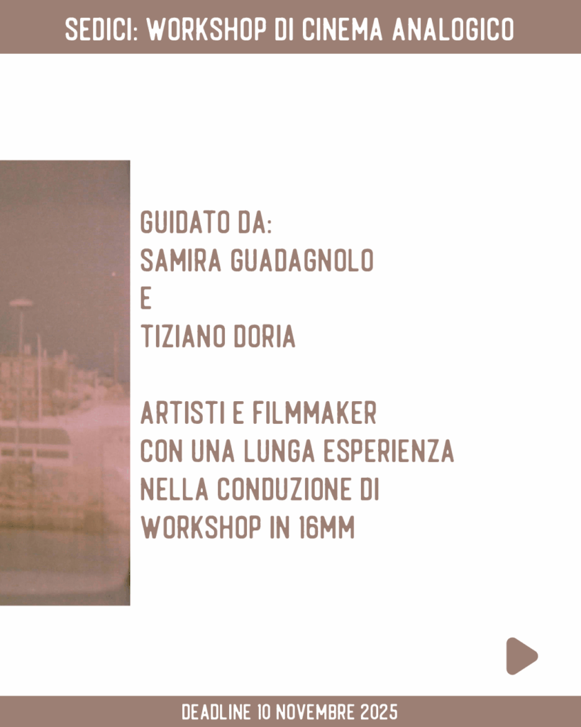 Il laboratorio propone un’esperienza immersiva nel cinema analogico in 16mm, guidata da Samira Guadagnolo e Tiziano Doria, artisti e filmmaker con una lunga esperienza nella conduzione di workshop in 16mm.